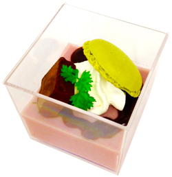 『1789』の舞台となったフランス産のフランボワーズピューレを贅沢に使用したムースに、チョコレートソース・生チョコ・ホイップクリームをトッピングし、その上にマカロンの帽子を乗せて・・・公演をイメージしたデザートです。