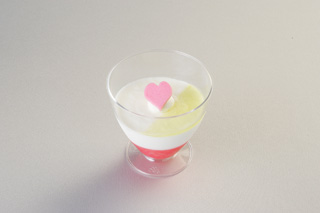 月の形をしたレモンジュレとハートの形をしたプラチョコをトッピングした、